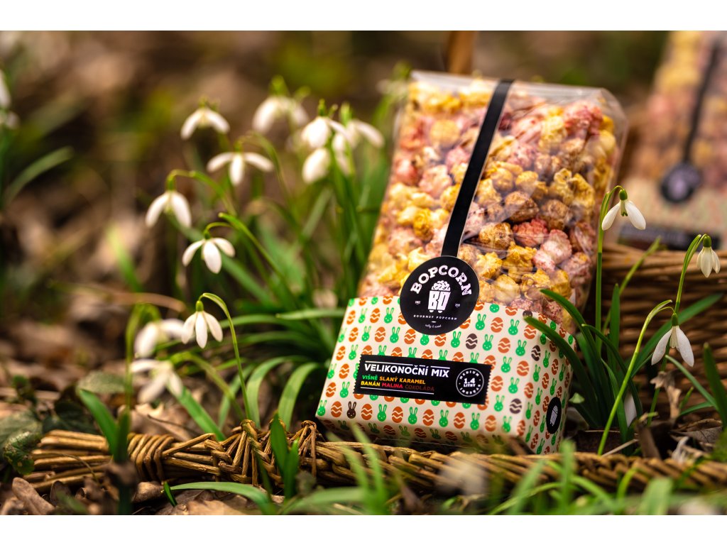 Speciální mix sladkých příchutí ve velikonočním kabátku! Nadělte koledníkům originální pomlázku! Višeň, slaný karamel, banán, čokoláda, malina to vše v jednom balíčku.